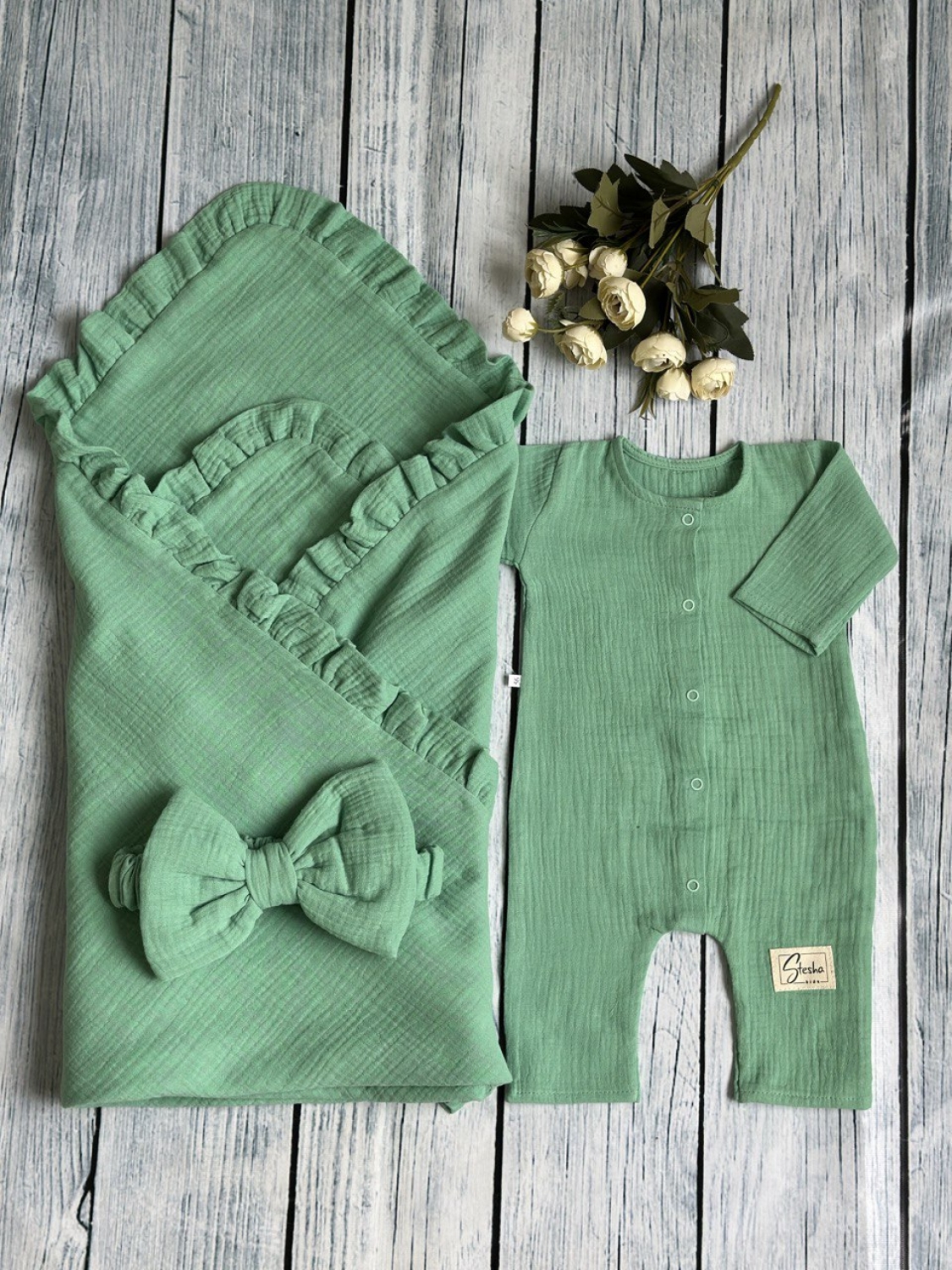 Теги: Купить детские конверты, комбинезон оптом, детские конверты на выписку оптом. 335-ОЛ. Комплект из детского комбинезона, р 56 и конверта муслин, хлопок 100% 90/90 см, олива цена,отзывы официальный сайт "Стеша Нерюнгри"