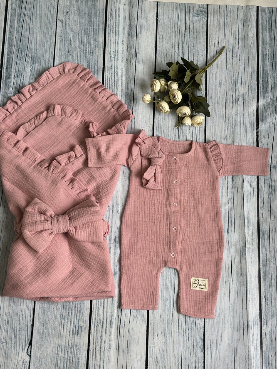 Теги: Купить детские конверты, комбинезон оптом, детские конверты на выписку оптом. 335-П. Комплект из детского комбинезона, р 56 и конверта муслин, хлопок 100% 90/90 см, пудра цена,отзывы официальный сайт "Стеша Нерюнгри"
